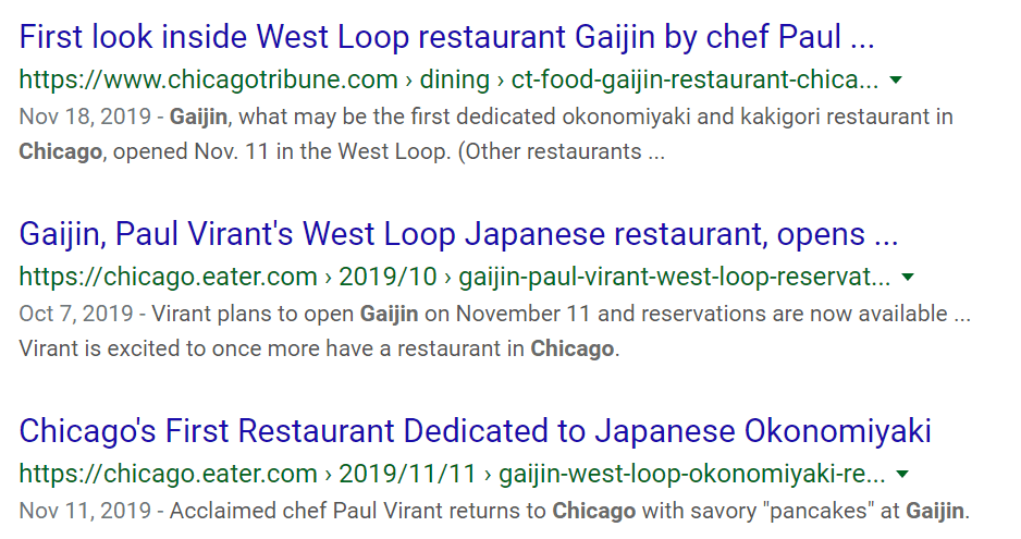 Back to the story – I had never eaten okonomiyaki before, but I knew I’d like it. After all, I like eggs, shredded veggies, brown Japanese sauces, kewpie mayo, and bonito flakes. I had never heard of an okonomiyaki restaurant in Chicago, but I decided that a quick Google search wasn’t going to hurt. And so I searched, “okonomiyaki chicago,” expecting nothing. Instead, I saw:
