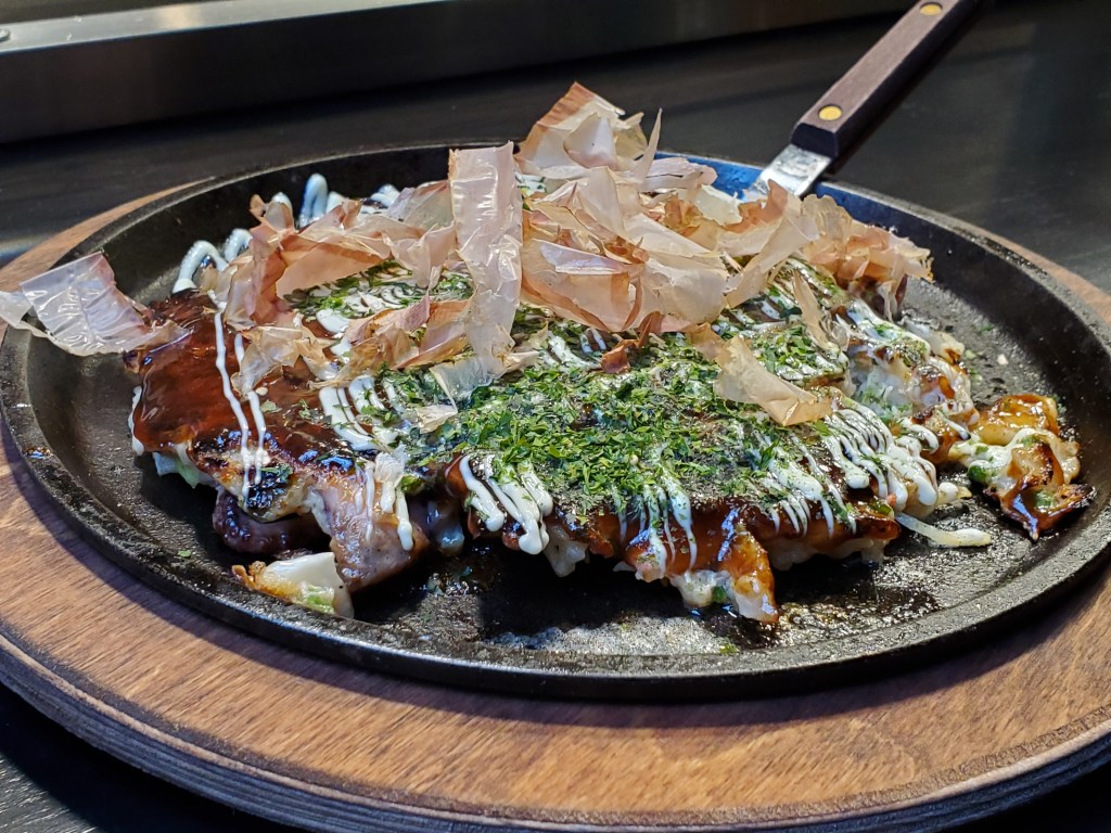 The Hiroshima-style okonomiyaki also had the addicting Maillard flavor and crispiness, but instead of contrasting softness, it contrasted the bouncy texture of the yakisoba noodles. To my surprise, the noodles were pretty sweet. This sweetness was not uncalled for, though, because the salty bacon complemented the sweetness nicely. This okonomiyaki was also covered in the sweet sauces and salty bonito flakes, which further intensified the sweet-salty flavor of the dish.